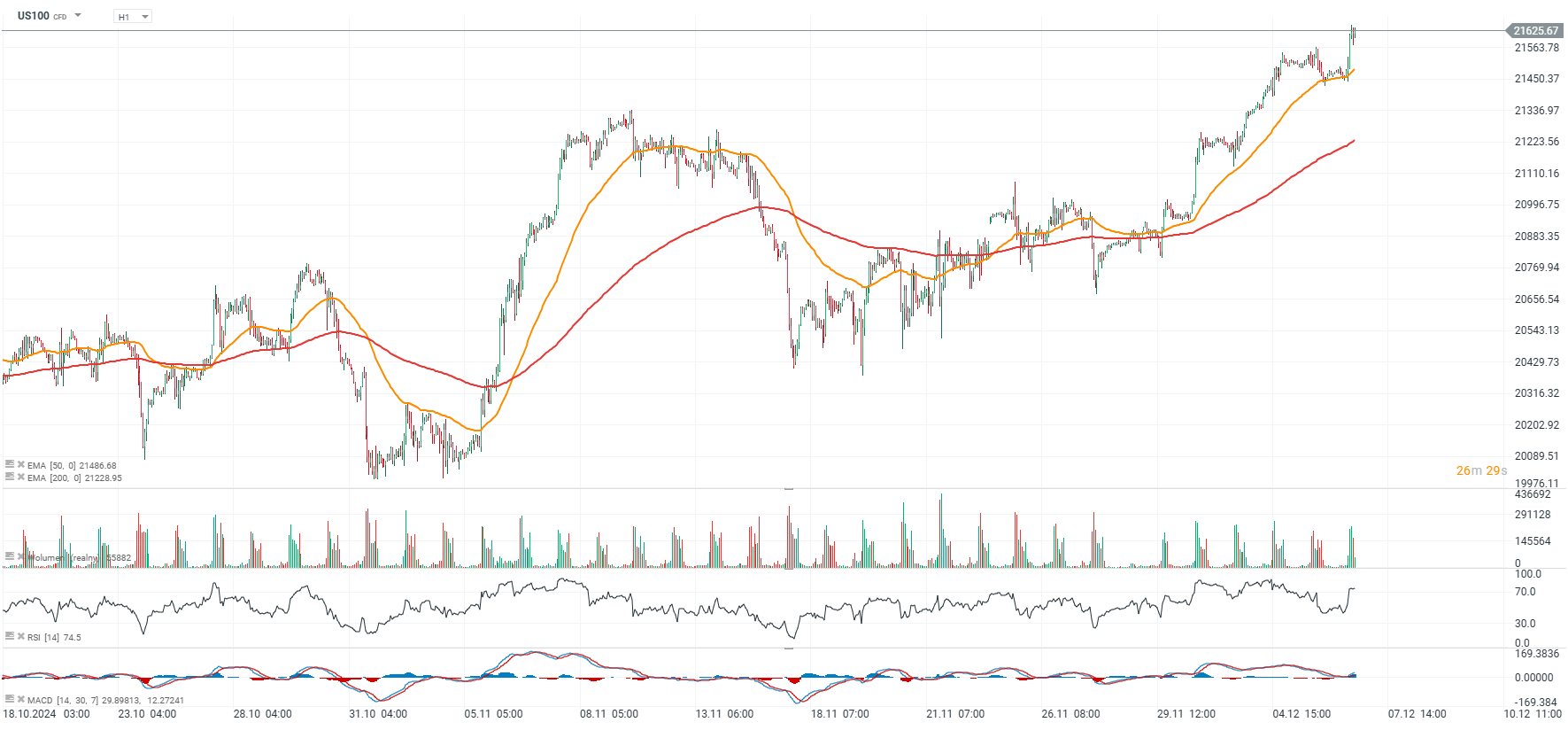 ملخص يومي: مؤشر US100 يرتفع بنحو 1% 📈ارتفاع أسعار العملات المشفرة والمعادن الثمينة
