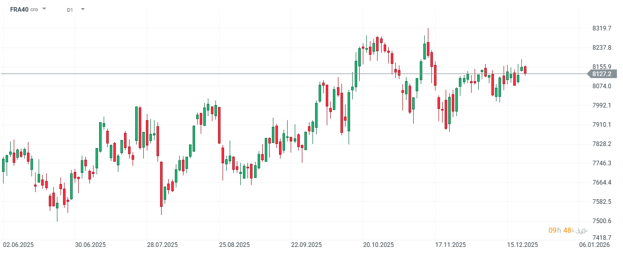 وقد أثرت هذه الشكوك أيضًا على أسواق الأسهم الفرنسية، التي تراجع أداؤها مقارنةً بمعظم المؤشرات الأوروبية الأخرى منذ بداية العام. فعلى سبيل المثال، حقق مؤشر كاك 40 مكاسب متواضعة نسبيًا بلغت 10.43%، بينما سجلت المؤشرات الأوروبية الرئيسية ارتفاعات أقوى بكثير: فقد ارتفع مؤشر داكس الألماني بنسبة 21.57%، ومؤشر إيبكس 35 الإسباني بنسبة 47.80%، ومؤشر فوتسي ميب الإيطالي بنسبة 29.89%.