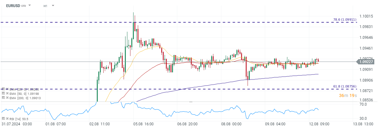 تعرض الدولار الأمريكي لضربة في بداية أغسطس بعد أن أظهر تقرير الوظائف غير الزراعية لشهر يوليو نموًا أضعف بكثير من المتوقع في الوظائف بالإضافة إلى تباطؤ أكبر من المتوقع في نمو الأجور. أدت إصدارات البيانات إلى زيادة رهانات الاحتياطي الفيدرالي الحمائمية، مما وضع ضغوطًا صعودية على زوج اليورو/الدولار الأمريكي. حاليًا، تتوقع أسواق المال 100 نقطة أساس من التيسير بحلول نهاية عام 2024. وهذا يعني أن الأسواق لا تتوقع فقط أن يخفض الاحتياطي الفيدرالي أسعار الفائدة في كل من الاجتماعات الثلاثة المتبقية هذا العام، ولكن أيضًا أن أحد هذه التخفيضات سيكون بمقدار 50 نقطة أساس بدلاً من 25 نقطة أساس.