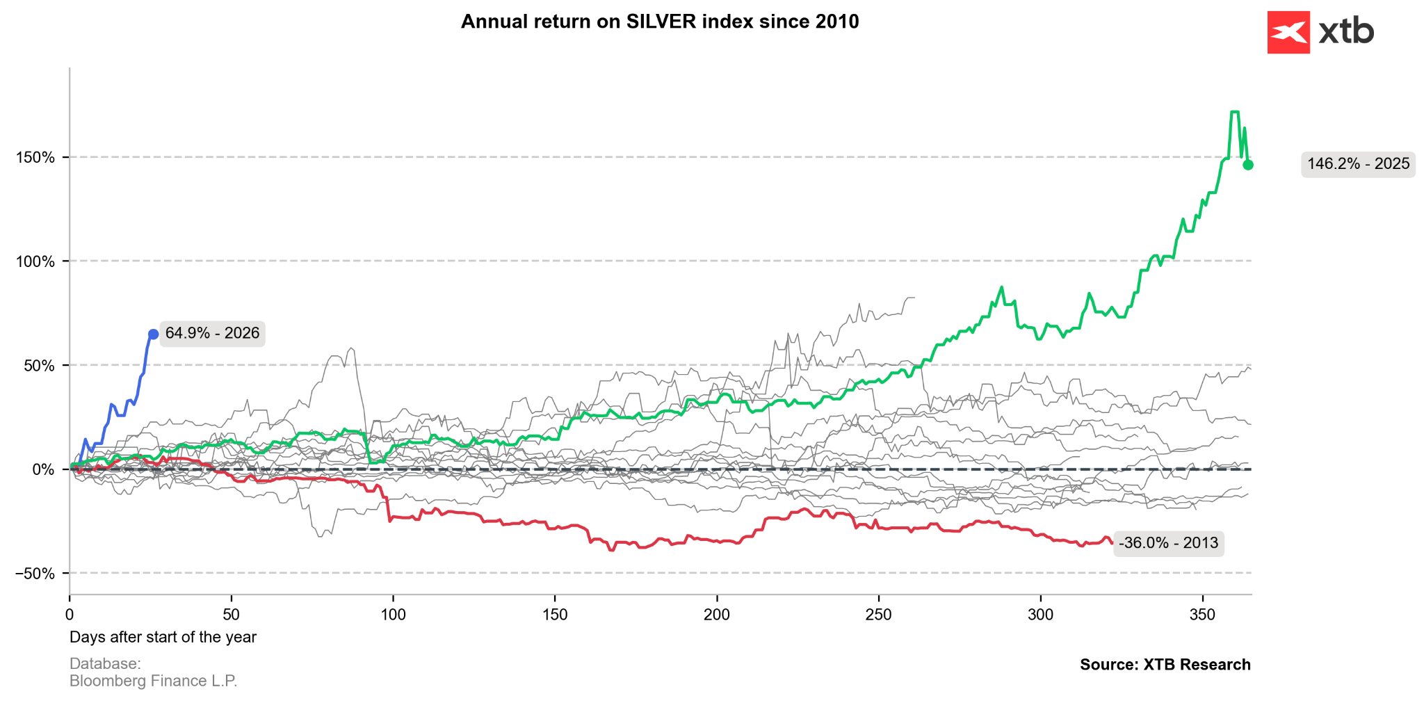 مخطط أسعار الفضة السنوي. المصدر: أبحاث XTB