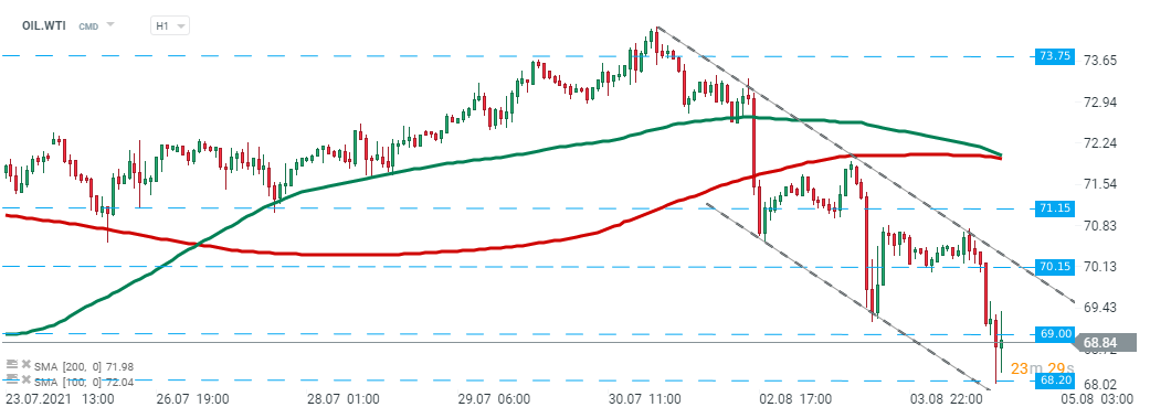لم يكن لإصدار تقرير اليوم تأثير كبير على أسعار النفط. يستمر سعر خام غرب تكساس الوسيط (OIL.WTI) في التحرك حول مستوى 69.00$. المصدر: xStation5