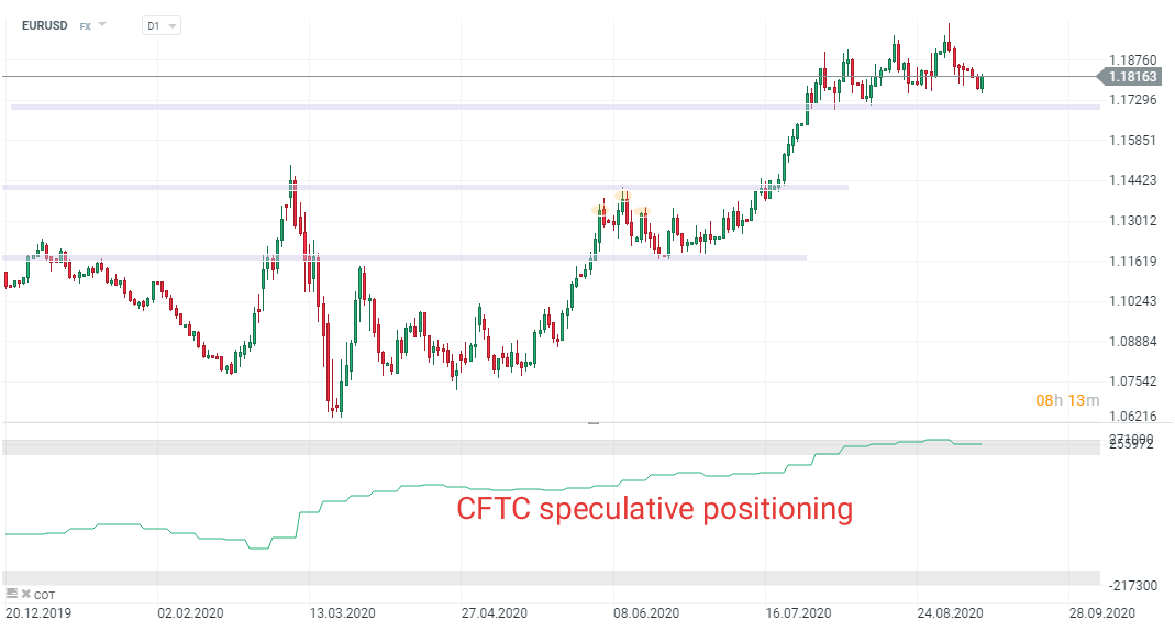 هذا ساعد زوج EURUSD على الارتفاع اليوم - عاد الزوج فوق مستوى 1.18. يجب أن يضع المتداولين في اعتبارهم صافي مراكز المضاربة المرتفعة للغاية ، وهو ما يمثل مخاطرة واضحة على اليورو. ما هو مثير للاهتمام ، لا توجد ردود فعل سلبية على مؤشر DE30. ارتفع المؤشر الألماني اليوم بمقدار 250 نقطة وهو عند أعلى مستوى له منذ الخميس الماضي.
