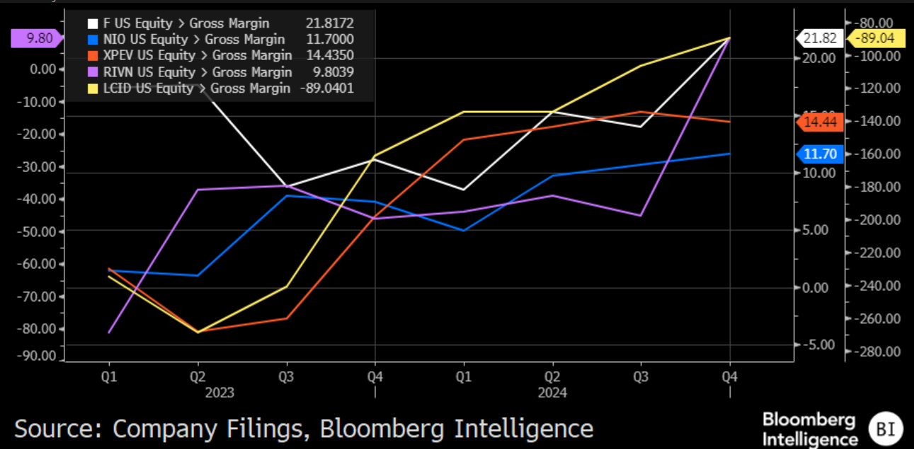 تركز كل من تسلا وبي واي دي على تحقيق وفورات الحجم، مما يدفع هوامش الربح في هذا القطاع إلى أدنى مستوياتها، ويُجبر الشركات على استثمارات باهظة، ويُؤجّج حروب الأسعار. ومن الواضح أن شركات تصنيع السيارات التقليدية، في الولايات المتحدة وأوروبا، تُعاني في سبيل إعادة تجهيز مصانعها، وتشكيلات طرازاتها، ووكالاتها، وأقسام التصميم لديها لتلائم السيارات الكهربائية. وفي هذا السياق، يُمثّل نهج ريفيان التدريجي إضافةً قيّمةً للصناعة والسوق. تُمكّن الابتكارات في تكنولوجيا الإنتاج والإدارة والمواد حتى الشركات الصغيرة نسبيًا من منافسة التكتلات العملاقة، وهو أمر كان يصعب تصوره قبل نحو اثني عشر عامًا.