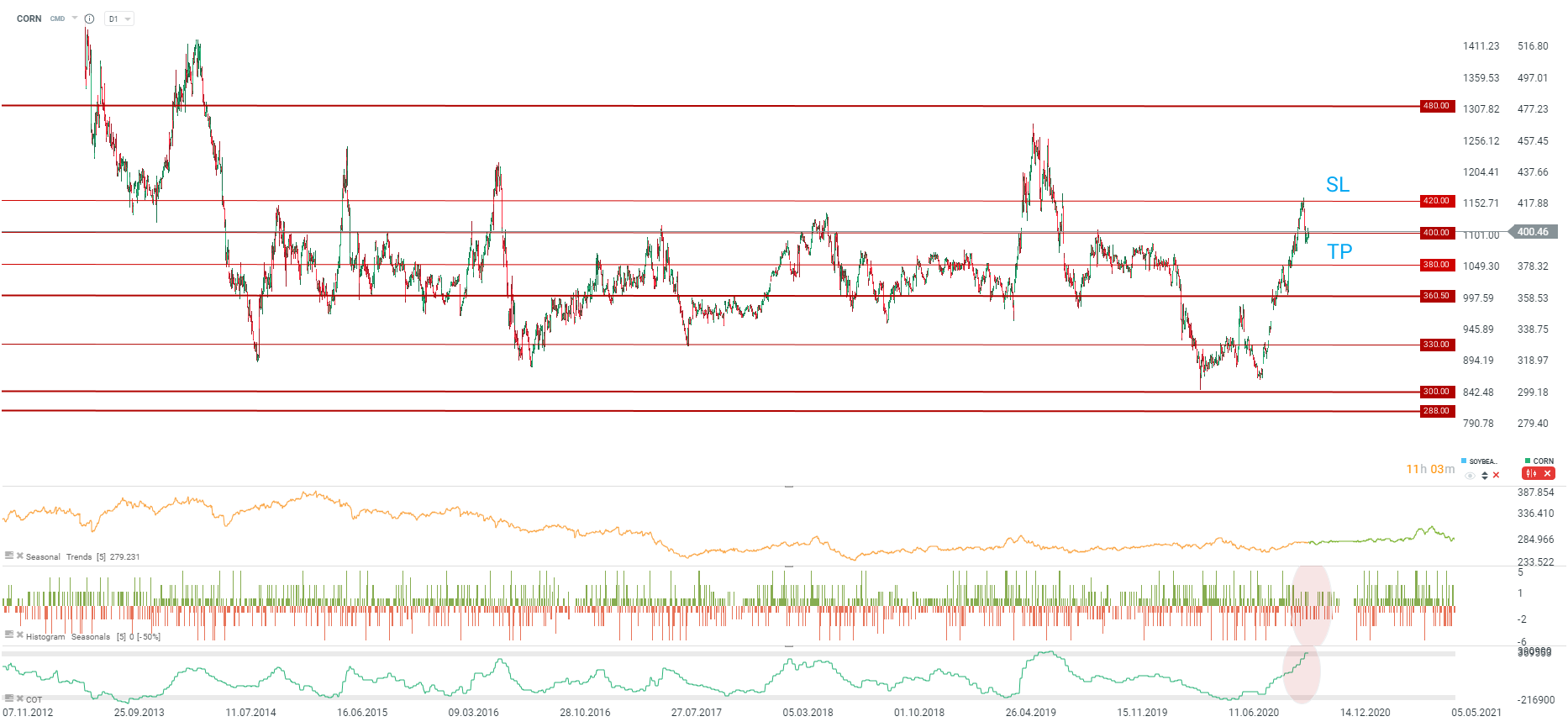 - الذرة ، مثل فول الصويا ، في منطقة ذروة الشراء من وجهة نظر المضاربة