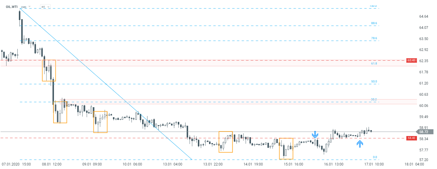 اخترق سعر النفط الحد العلوي من هيكل Overbalance أمس. وفقًا للمنهجية ، قد يكون من الممكن الآن تصحيح صعودي أكبر أو حتى انعكاس الاتجاه. طالما ظل السعر فوق مستوى 58.4 دولار ، فإن الحركة الصعودية هي السيناريو الأكثر ترجيحًا. يمكن العثور على أقرب مقاومة عند مستوى 60.3 دولار ، حيث يوجد تصحيح فيبوناتشي 38.2٪.