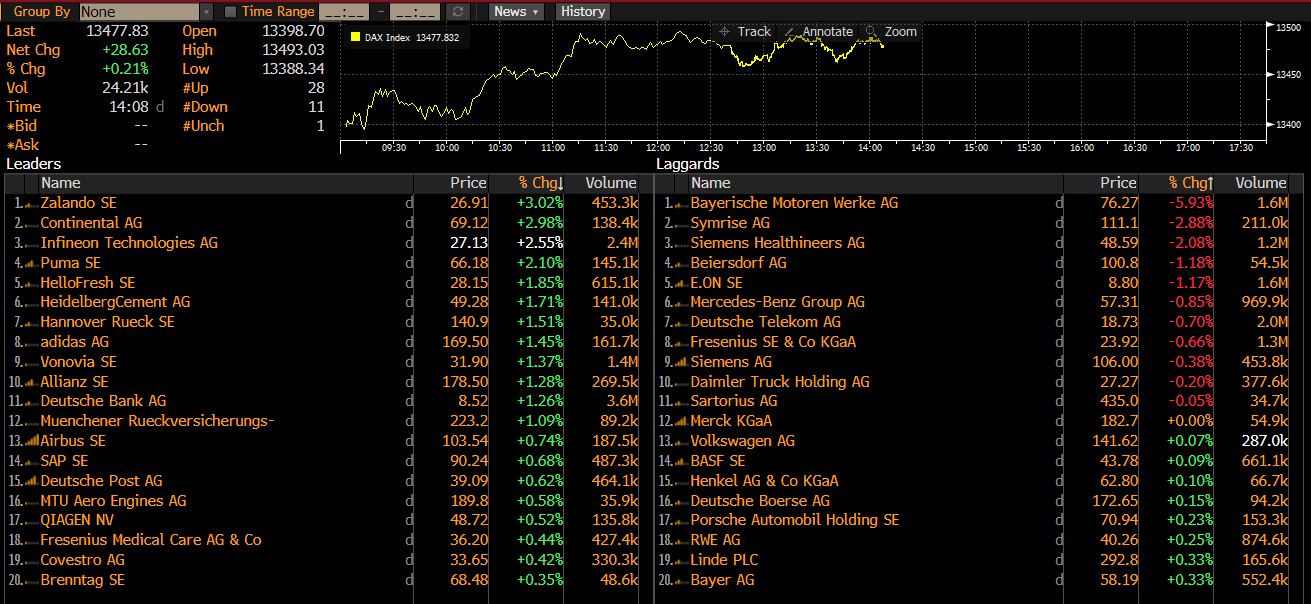 الأسهم الأكثر نشاطا في مؤشر DAX (DE30). المصدر: بلومبرج