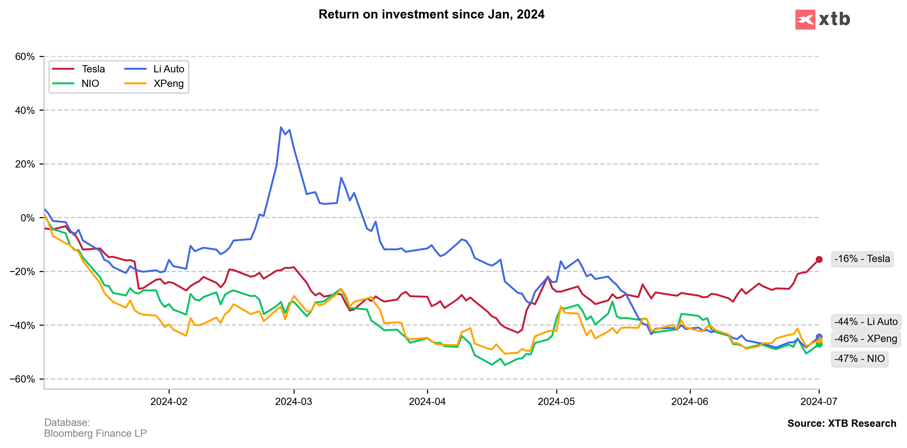 على الرغم من التقارير الواعدة، فإن العائدات على أسهم المنافسين الصينيين لا تزال أقل من تلك الخاصة بشركة تسلا. والأهم من ذلك أن جميع الشركات المذكورة سجلت انخفاضات منذ 1 يناير 2024.