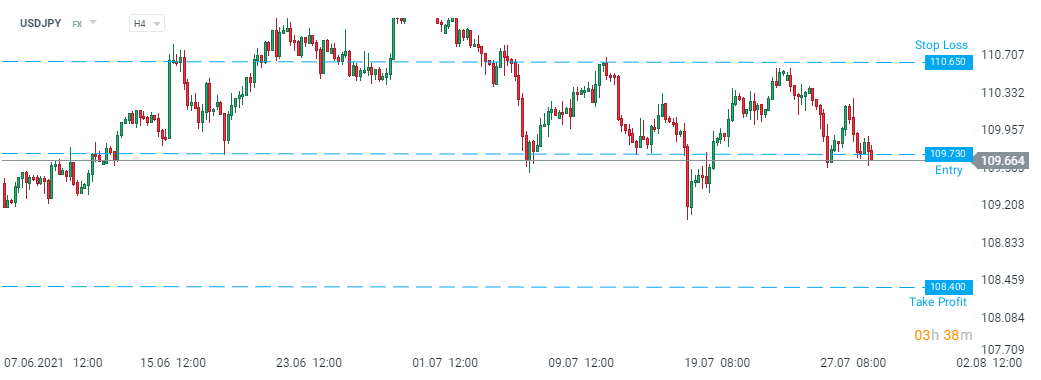 يوصي بنك كريدي سويس ببيع زوج USDJPY بسعر 109,73 و استهداف 108,40 و وضع أمر وقف الخسارة عند 110,65. المصدر: xStation5