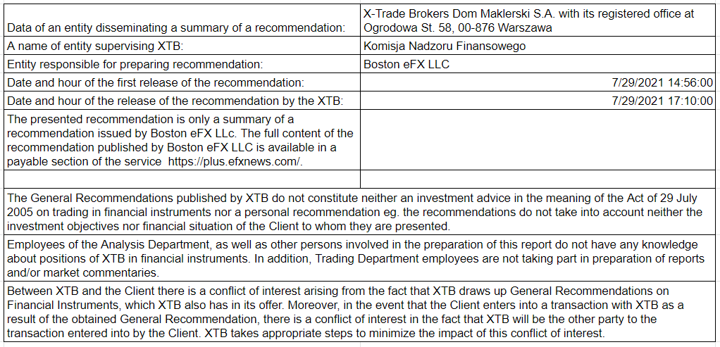 يوصي البنك ببيع زوج العملات بالمستويات التالية: