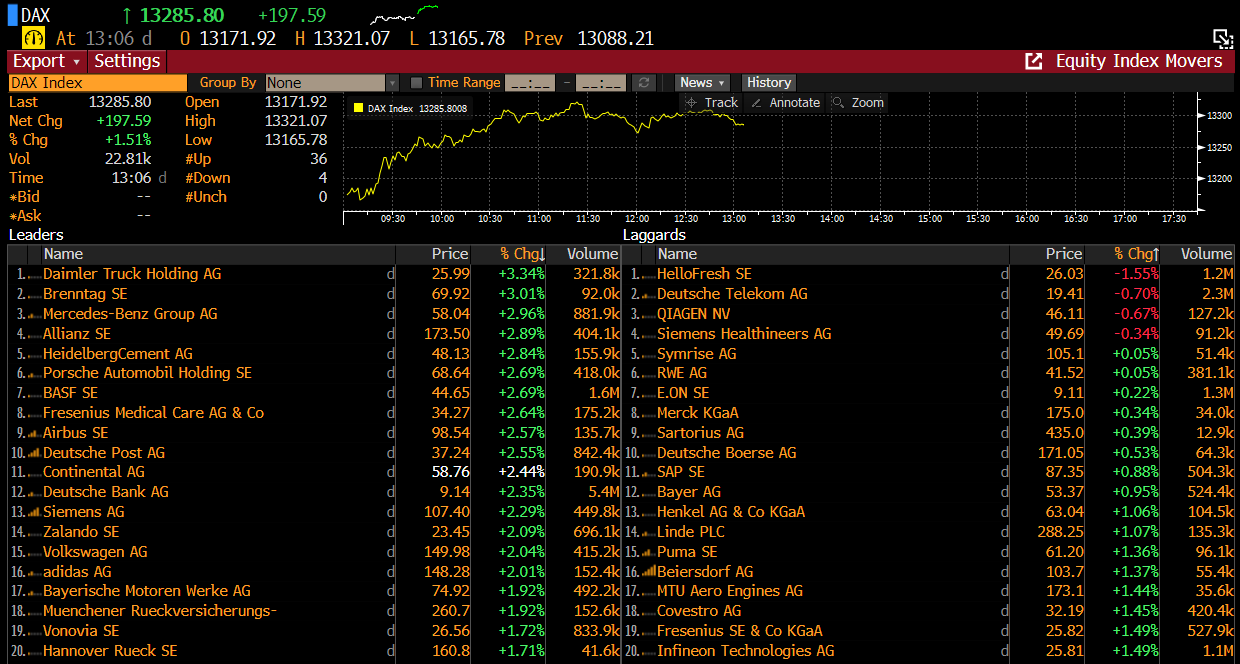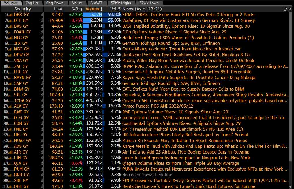 الأسهم الأكثر نشاطًا في مؤشر DAX (DE30). المصدر: بلومبرج
