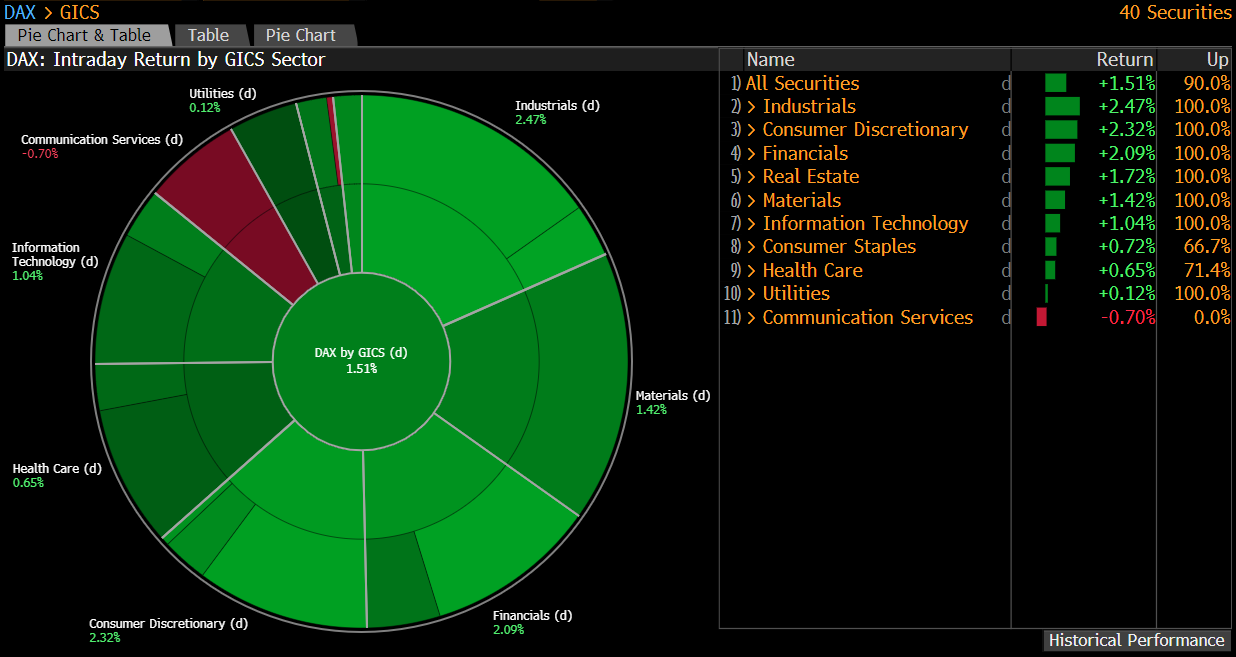 تجلب الجلسة الأولى في السوق الألمانية هذا الأسبوع مكاسب في معظم قطاعات الاقتصاد. يتم تسجيل زيادات كبيرة ، من بين أمور أخرى: الصناعات والسلع التقديرية.