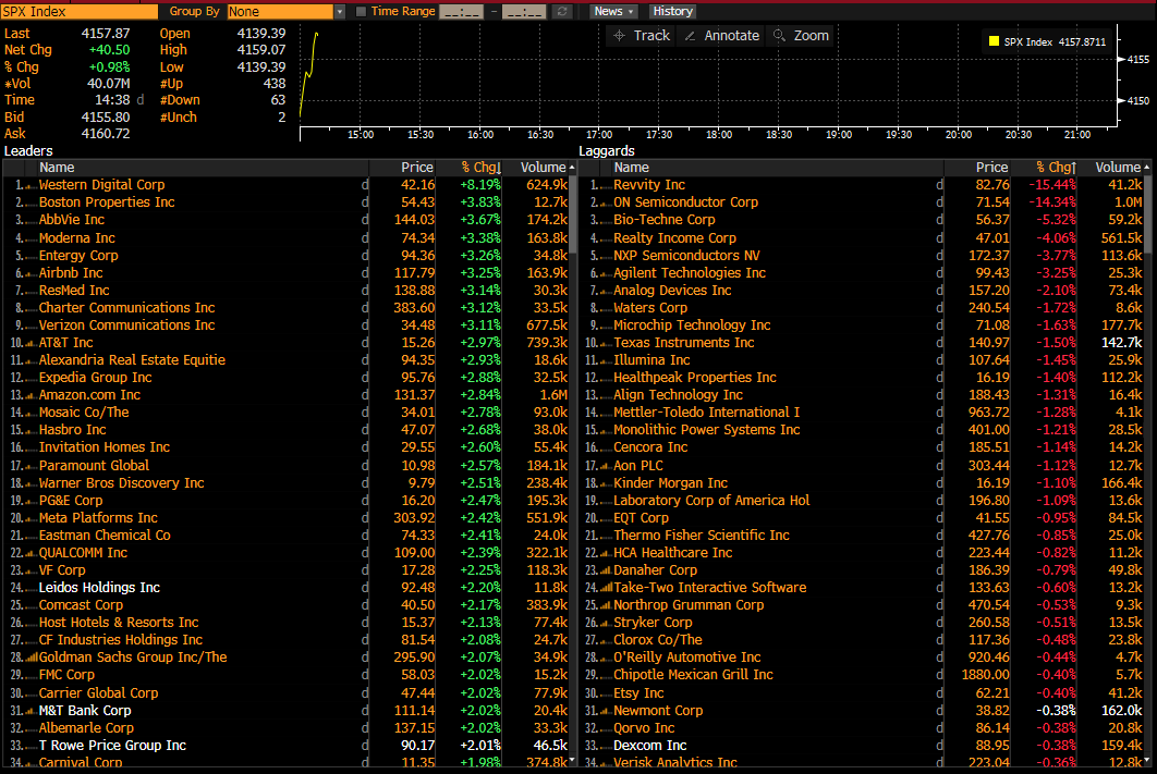 As ações da Western Digital (WDC.US), a Boston Properties (BSX.US) e a AbbVie (ABBV.US) estão a liderar os ganhos.