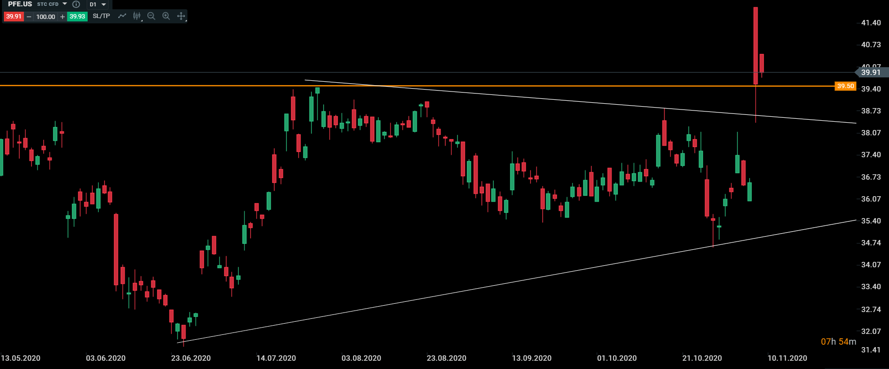 Pfizer (PFE.US), Gráfico diário. Fonte: xStation