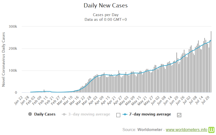 - Os EUA continua de longe o país mais afetado, com mais de 4,10 milhões de casos. O número de infecções no Brasil é o segundo país mais atingido, superou os 2,23 milhões. A Índia, que é o terceiro país com mais infectados, registou mais de 1,24 milhão de casos.