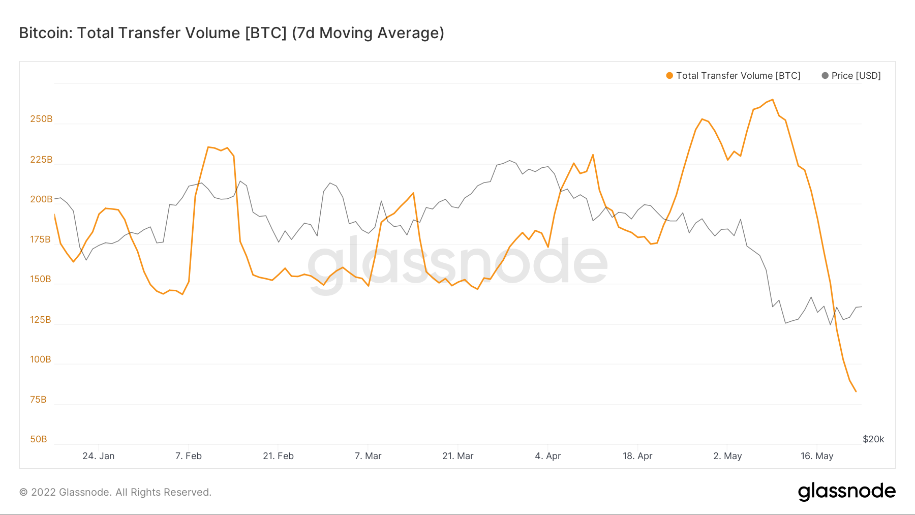 As transações on-chain para mínimos dos últimos 9 meses. Fonte: Glasssnode