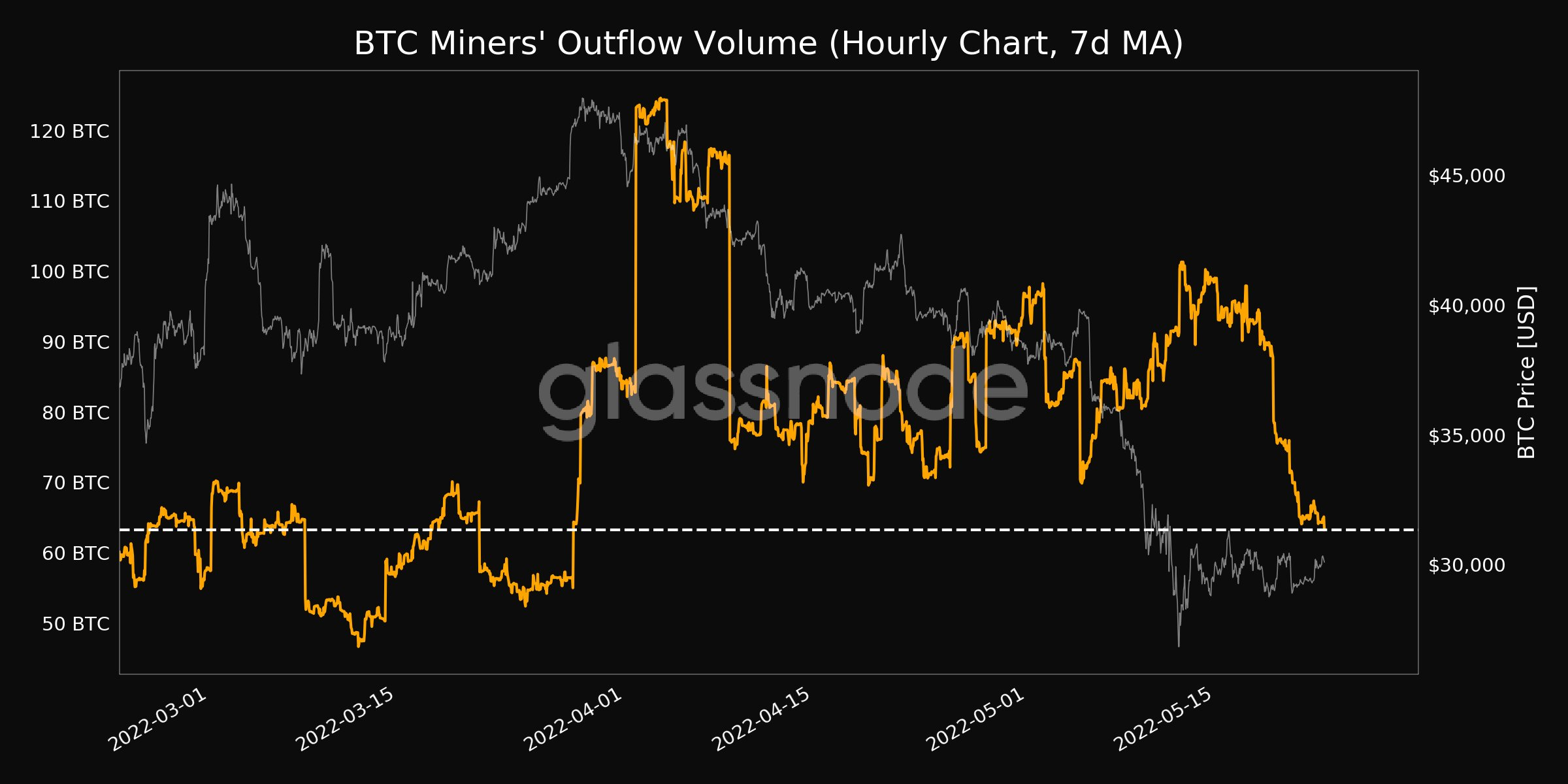 As saídas dos miners, que medem quantas moedas deixaram as carteiras dos mineiros, caíram para o mínimo deste mês. Fonte: Glasssnode