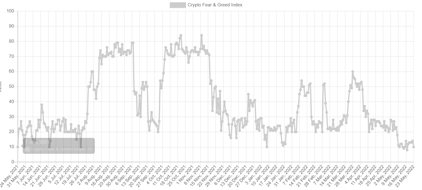 O índice que mede o medo e a ganância no mercado das criptomoedas desceu 4 pontos e permanece perto dos mínimos históricos e alguns investidores podem ver esta situação como uma oportunidade de compra. Fonte: Alternativa.me