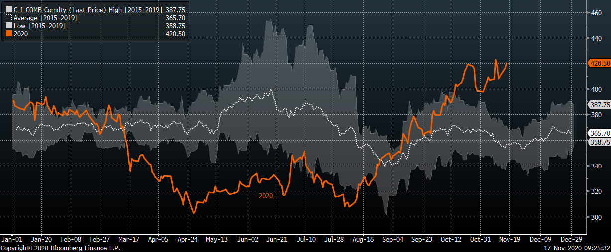 - Milho continua a seguir a tendência de alta e a testar os máximos dos últimos 5 anos