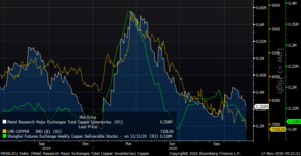 - A subida nos preços do cobre vem acompanhada de queda dos inventários nas principais bolsas