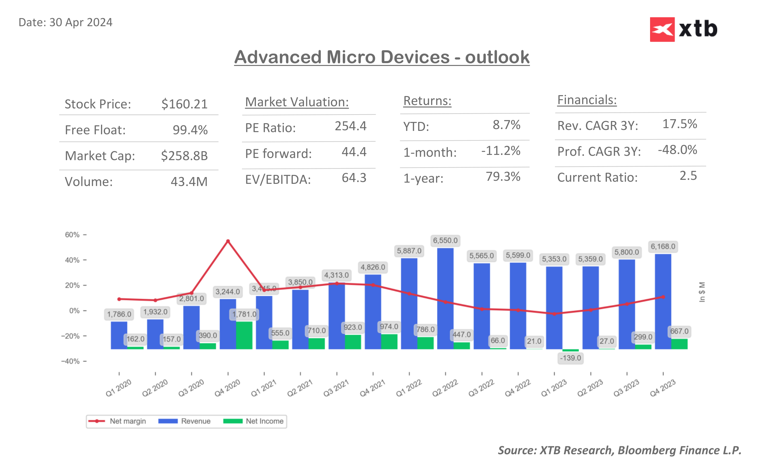 Os analistas prevêem um relatório consistente com as expectativas, com potencial de crescimento no setor MI300. O novo tipo de chip MI300, que visa competir com a oferta da Nvidia, deverá trazer à empresa uma receita anual total de cerca de US$ 4 bilhões por ano, indicando potencial de crescimento para o portfólio de IA. Espera-se também que a AMD veja crescimento no segmento geral de IA e perspectivas promissoras para os próximos trimestres, incluindo o já mencionado chip MI300.