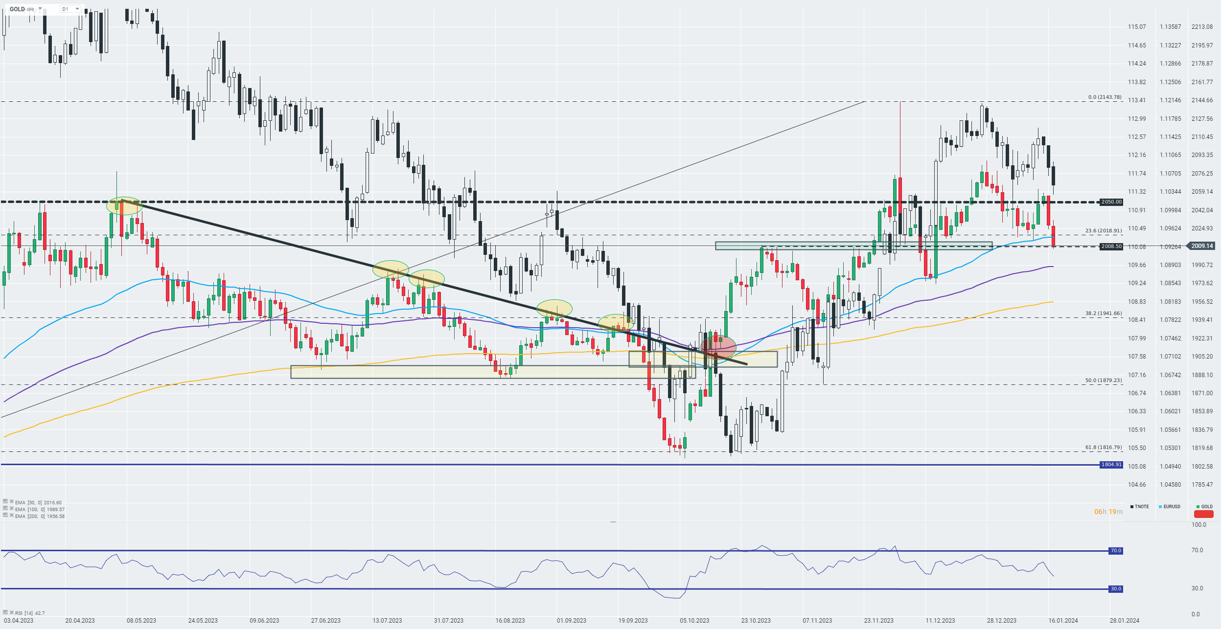 As descidas do ouro estão correlacionadas com a valorização dos títulos de dívida dos EUA. Neste momento, o OURO está a aproximar-se da barreira psicologicamente importante de cerca de 2 000 USD por onça.