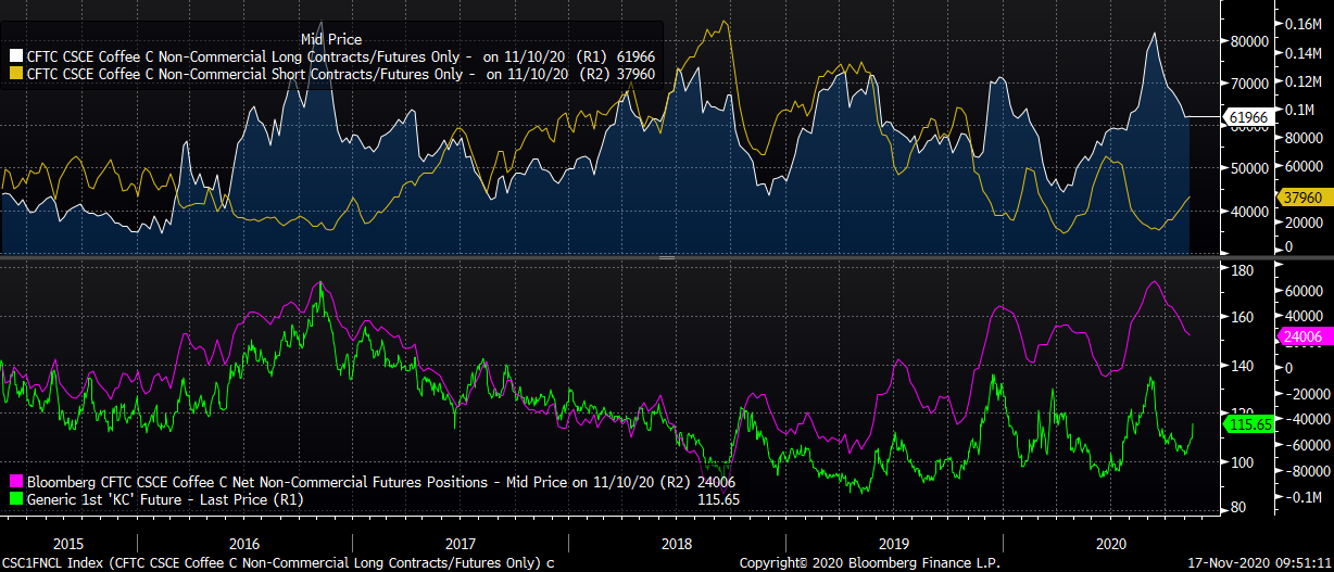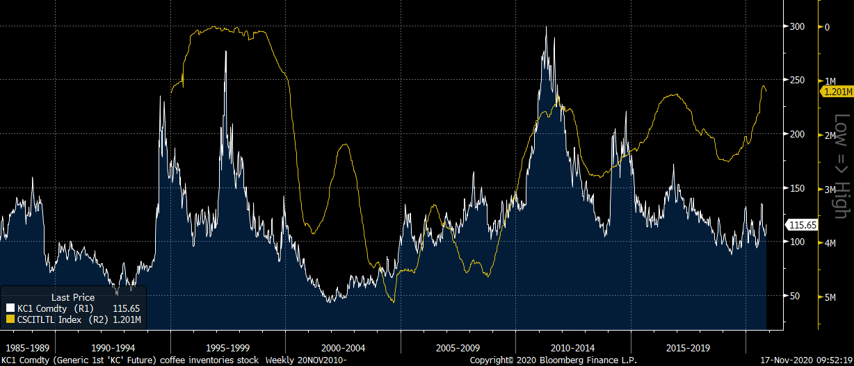 Os preços do café subiram mais de 4% ontem com as ameaças do furacão Iota. Fonte: Bloomberg