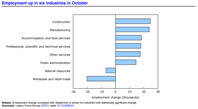 Simultaneamente à divulgação dos dados dos EUA, foi divulgado o relatório do trabalho canadiano para Outubro.