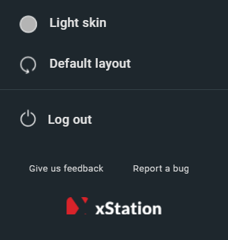 A xStation5 usa um fundo preto por defeito, mas pode facilmente mudá-lo para branco carregando com o botão esquerdo do mouse no ícone que se encontra no canto inferior direito da plataforma e selecionar a opção “tornar mais claro/light skin”.