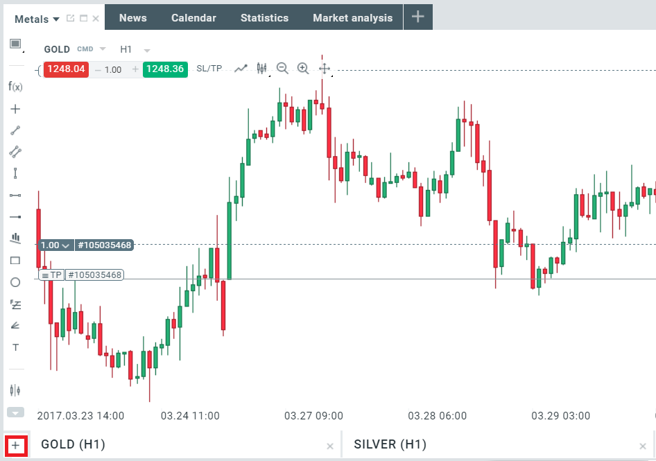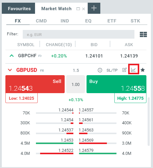 Também pode adicionar novos gráficos a partir do módulo Market Watch – basta que carregue no ícone do gráfico:
