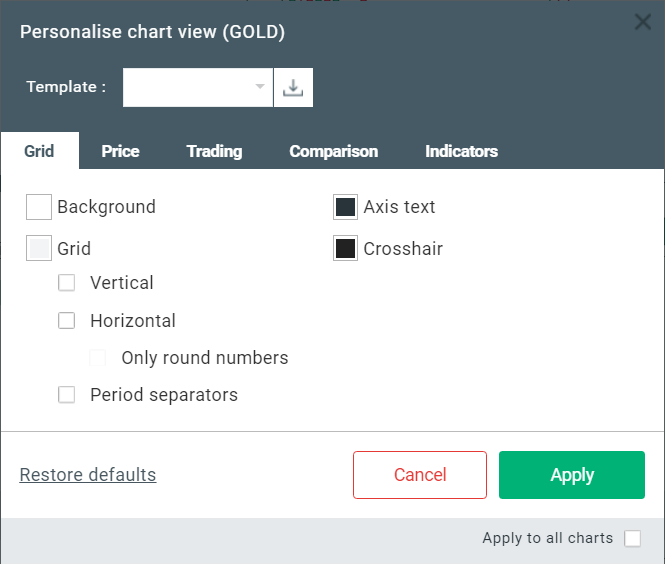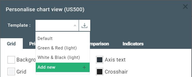 Com a xStation 5, pode facilmente personalizar a aparência dos gráficos conforme as suas necessidades. Para isso, basta clicar com o botão direito do mouse no gráfico e selecionar a opção “personalizar a visualização do gráfico / personalize chart view”. Irá surgir uma nova janela, na qual pode gerir e personalizar os gráficos de acordo com as suas preferências