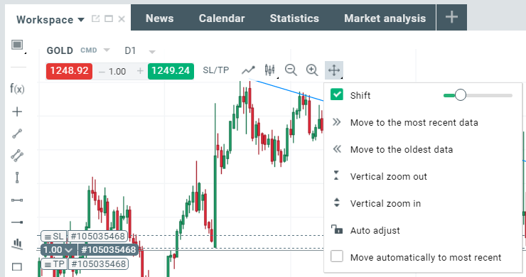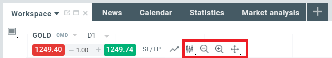 A partir desta barra de ferramentas, pode facilmente mudar o tipo de gráfico, fazer zoom ou ajustar a posição do gráfico.