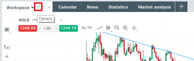Se utilizar vários monitores para negociar, há uma forma simples de separar a área de trabalho e movê-la para outro monitor. Para desagregar essa área de trabalho do módulo principal, basta que selecione o seguinte ícone: