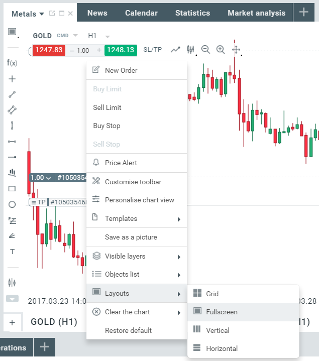 Se quiser observar mais que um gráfico ao mesmo tempo, simplesmente mude o layout da janela do gráfico clicando com botão direito do mouse nesse mesmo gráfico.