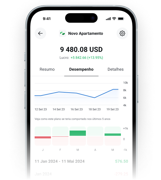 Você pode abrir e fechar seus Planos de Investimento Internacional a qualquer momento. Depósitos e saques rápidos permitem que você mantenha controle total sobre seu fluxo de dinheiro.