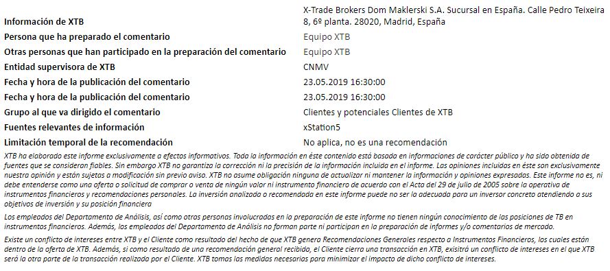 Si bien las noticias sobre el comercio probablemente han contribuido a la debilidad observada en las acciones hoy, las caídas parecen más debidas a otro conjunto de datos decepcionantes de la zona euro. Un portavoz del Ministerio de Comercio de China dijo que las últimas acciones de EE. UU., presumiblemente en torno a la represión de Huawei, están impidiendo que continúen las negociaciones. Gao Feng dijo anteriormente: "Si a Estados Unidos le gustaría seguir negociándo, con sinceridad, debería ajustar sus acciones equivocadas, sólo entonces las conversaciones pueden continuar ". Sin embargo, más pertinente es la información económica que escribimos anteriormente: “Los PMI preliminares para mayo de Alemania sorprendieron (una vez más) a la baja a pesar del hecho de que la barra se ubicó bastante baja. El PMI manufacturero bajó a 44.3 desde 44.4 y no alcanzó la estimación promedio de 44.8, mientras que el PMI de servicios bajó.