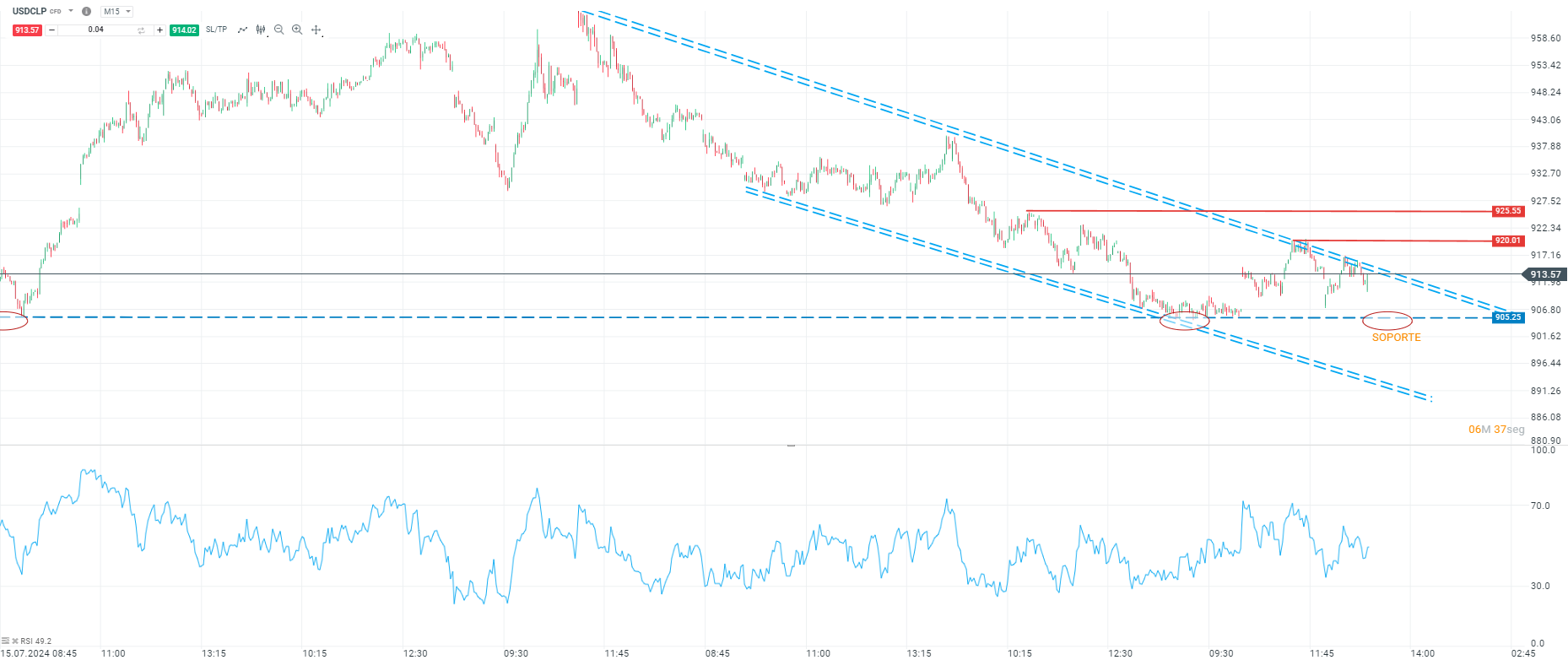 En el ámbito local, se espera la publicación del Índice de Actividad Económica en Chile a las 8:30, con una previsión del 1.7%. Además, mañana se conocerá la decisión de tasas de interés por parte del Banco Central de Chile, donde el mercado anticipa un recorte de 25 puntos base. Si el recorte es mayor, podría impulsar aún más el tipo de cambio, llevando al dólar a buscar la zona de $922 y potencialmente a acercarse a los $950. En caso de retrocesos, es poco probable que el soporte en los $900 se rompa en el corto plazo