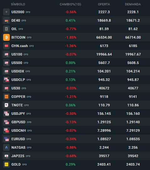 Mercado expectante al desempeño de las tecológicas hoy. A las 16:00 y 16:10 presentan resultados trimestrales Alphabet (Matriz de Google) y Tesla, los que pueden añadir ese catalizador que hace falta para ver un nuevo repunte del Nasdaq100 y de S&P 500. Kamala Harris se asoma como nueva contendiente de Trump, haciendo que la probabilidad de victoria del representante de los republicanos caiga a 60%.