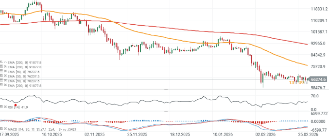 Otro impulso bajista hacia 50.000 dólares no puede descartarse, especialmente si las condiciones de la renta variable global se deterioran aún más, favoreciendo al dólar estadounidense, los rendimientos de bonos y el petróleo.