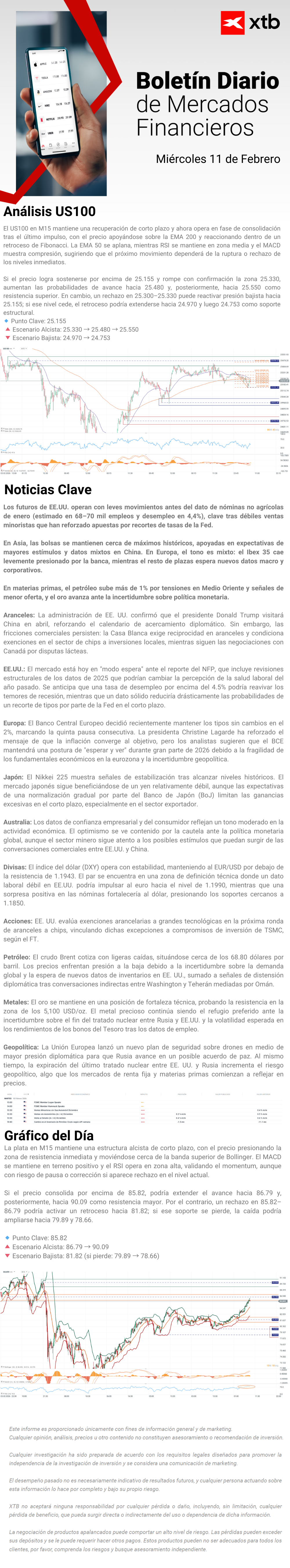 - Análisis técnico del día para el principal activo: Revisión detallada del comportamiento técnico del instrumento más relevante del día, con niveles clave de soporte y resistencia.