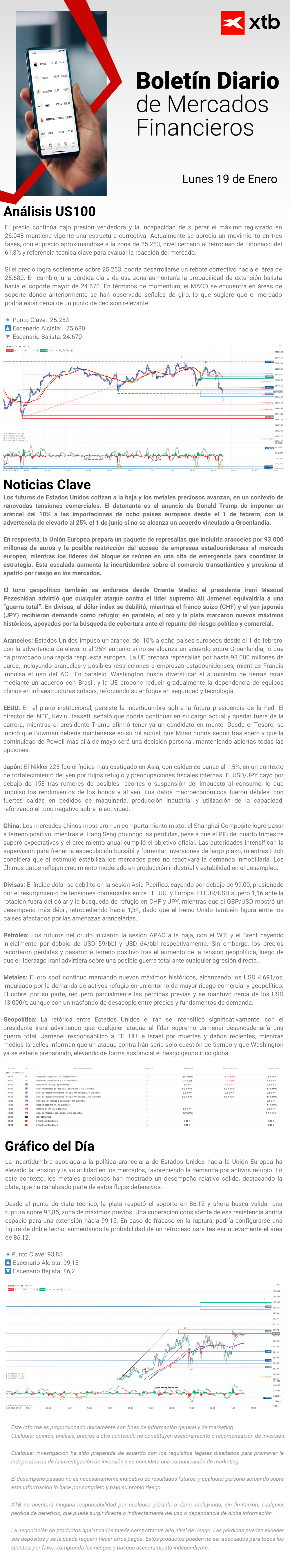 Este material ha sido elaborado por XTB. Su contenido tiene fines exclusivamente informativos y no constituye, en ningún caso, una asesoría personalizada ni una recomendación de inversión sobre instrumentos, mercados o estrategias específicas. La información aquí contenida no considera los objetivos, la situación financiera ni el perfil de riesgo de ningún inversionista en particular. Antes de invertir en cualquier instrumento financiero, le recomendamos informarse sobre los riesgos involucrados y verificar si el producto es adecuado para su perfil. El desempeño pasado no garantiza resultados futuros. Toda decisión de inversión basada en este material será responsabilidad exclusiva del inversionista. XTB Agente de Valores SpA no se hace responsable por pérdidas directas o indirectas, incluidos daños patrimoniales o pérdida de beneficios, derivados del uso o confianza depositada en esta información.
