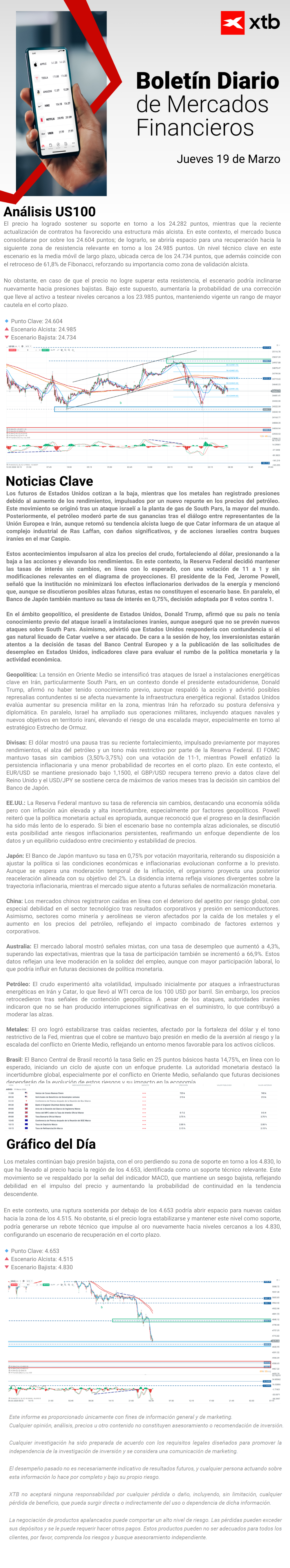- Análisis técnico del día para el principal activo: Revisión detallada del comportamiento técnico del instrumento más relevante del día, con niveles clave de soporte y resistencia.