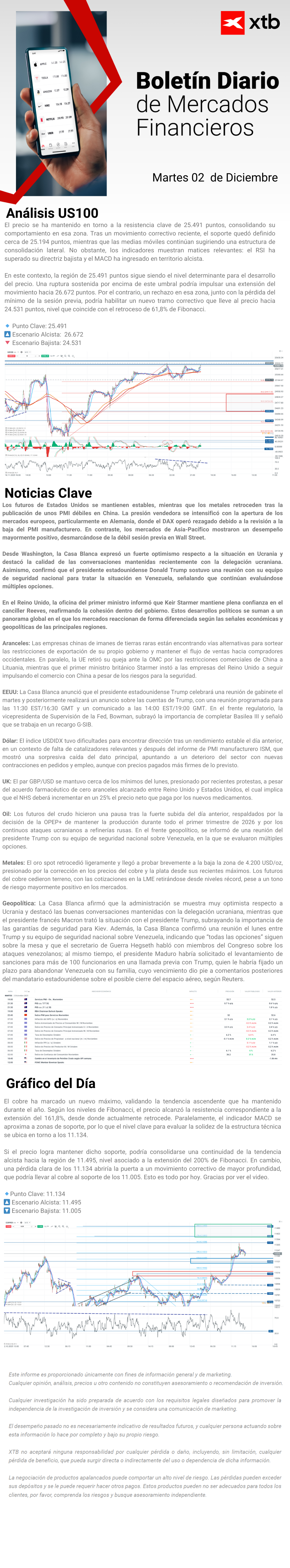 - Análisis técnico del día para el principal activo: Revisión detallada del comportamiento técnico del instrumento más relevante del día, con niveles clave de soporte y resistencia.