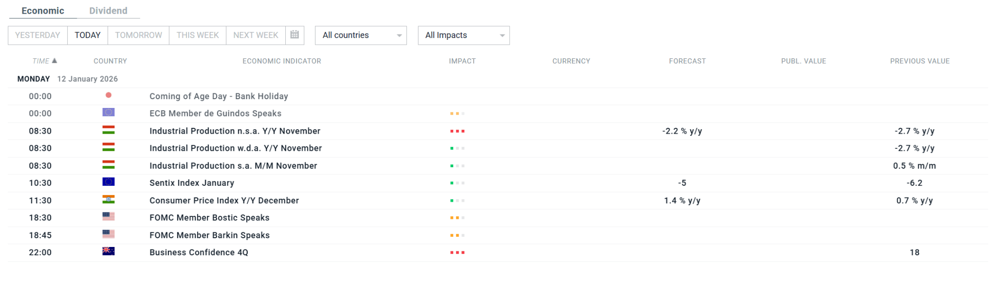 La sesión del lunes en los mercados financieros ha tenido un comienzo interesante, aunque no por la publicación de datos macroeconómicos programada para hoy. Tras el fin de semana, los mercados se centran tanto en la geopolítica, centrada en Groenlandia e Irán, como en cuestiones monetarias, condicionadas por las demandas interpuestas contra Jerome Powell, presidente del banco central estadounidense.