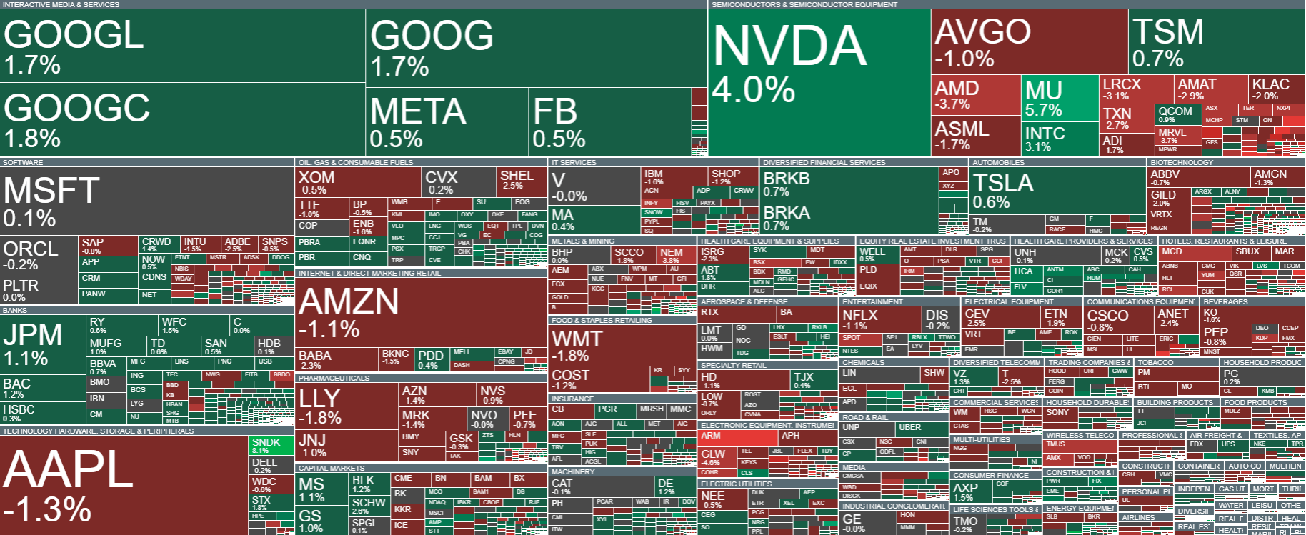 - Wall Street terminó mixto y cerca de máximos históricos, con el S&P 500 y el Nasdaq ligeramente al alza y el Dow marginalmente negativo, mientras los inversores esperan una semana clave de resultados de Alphabet, Microsoft, Amazon, Meta y Apple, además de la reunión de la Reserva Federal.