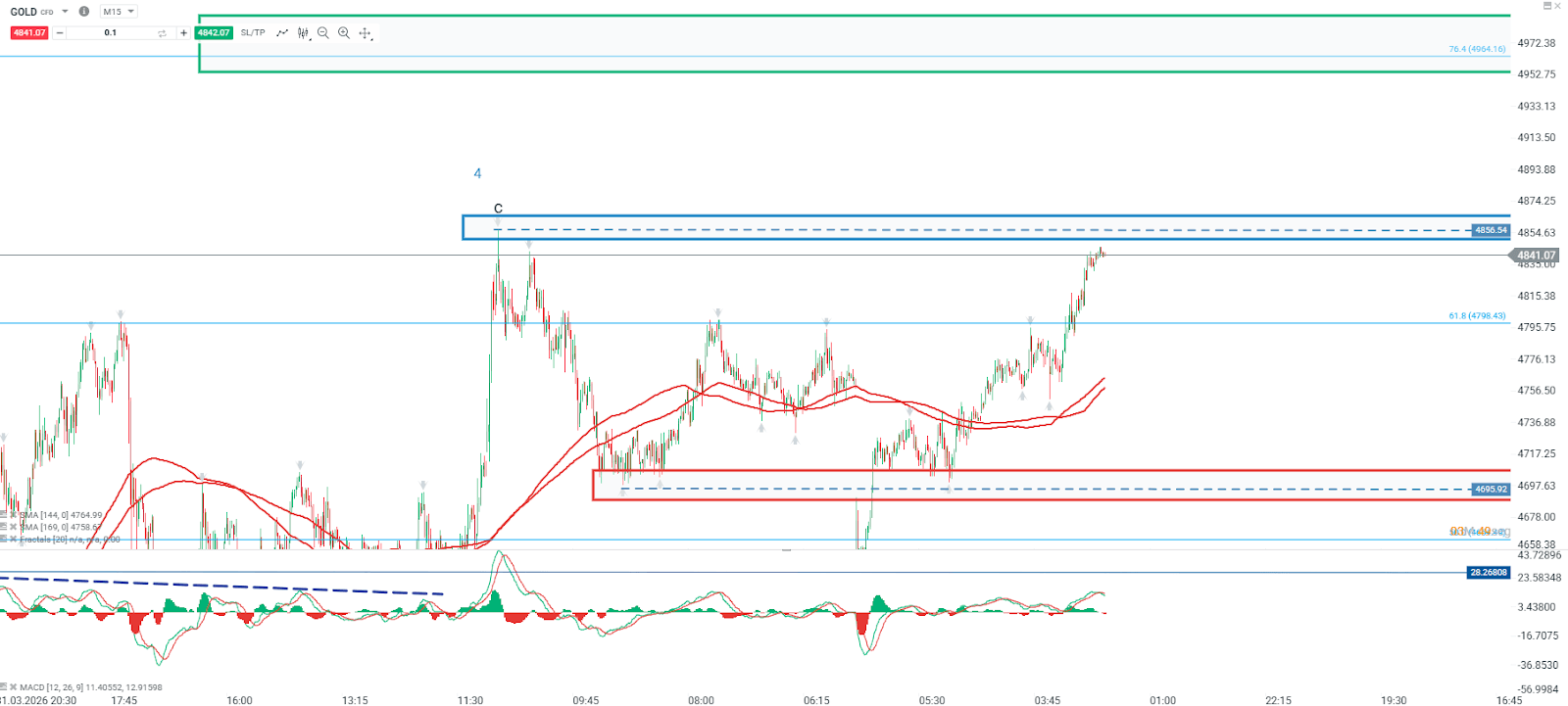 Los metales preciosos han registrado un repunte durante la sesión, en un contexto de disminución del riesgo geopolítico. En este escenario, el oro se aproxima a una resistencia clave en los 4.856 puntos, nivel que coincide con los máximos alcanzados durante la primera semana de abril. La superación de esta zona podría dar continuidad al movimiento correctivo actual, proyectando al precio hacia la siguiente resistencia en torno a los 4.964 puntos, correspondiente al retroceso de Fibonacci del 75,4%.