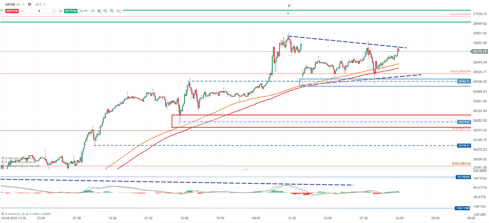 Mientras el precio se mantenga por encima de dicho soporte, el sesgo de corto plazo podría favorecer una extensión alcista hacia la zona de resistencia cercana a los 27.019 puntos, nivel relevante dentro de la estructura actual. Sin embargo, una ruptura bajista del soporte en 26.563 podría debilitar la recuperación observada y dar paso a un movimiento correctivo de mayor amplitud, hacia la siguiente región de soporte en torno a los 26.275 puntos.