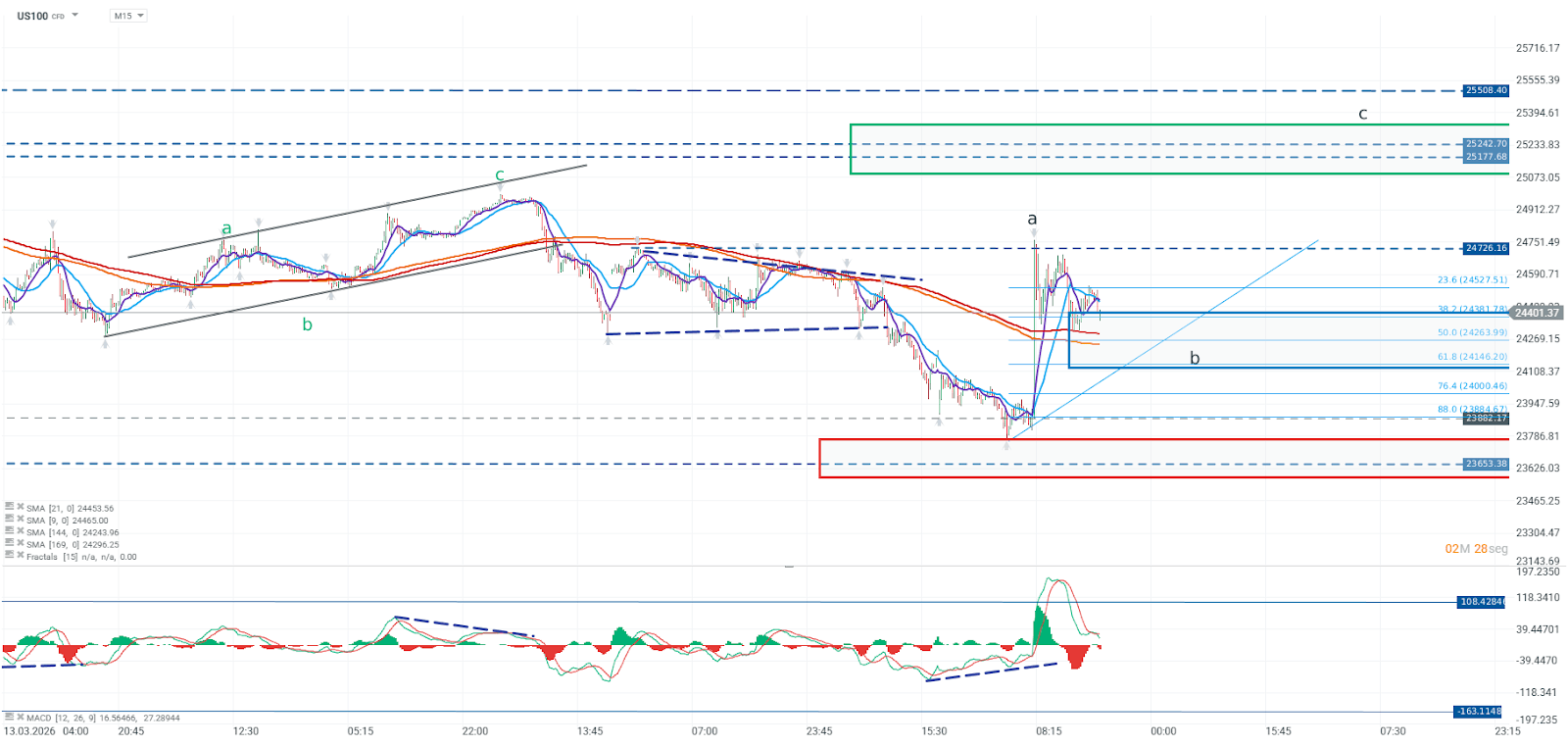 Mientras este nivel de soporte se mantenga, existe la posibilidad de que el precio desarrolle una estructura correctiva de tipo ABC, teniendo como principal resistencia el nivel de 25.242. No obstante, en caso de que continúe la presión bajista, se abre la posibilidad de una extensión de la caída hacia un soporte de mayor relevancia en torno a los 23.653.