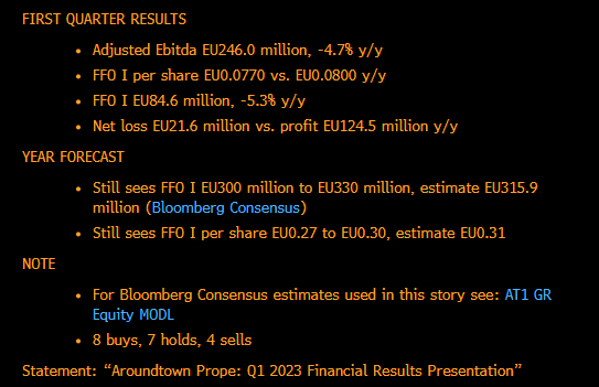 Aroundtown (AT1.DE) actualmente ha subido más del 2% tras la publicación de resultados financieros del primer trimestre mejores de lo esperado. La compañía reportó ventas de activos por 320 millones de euros en el año (pendiente) y comunicó que tiene intención de recomprar más bonos que ha emitido. Morgan Stanley comunicó que estas acciones indican que la empresa sigue enfocada en su estrategia de mejorar sus índices de liquidez.