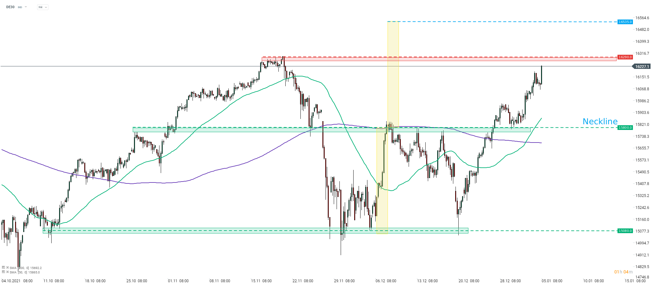 DE30 continúa el movimiento alcista con una ruptura por encima del nivel de 16.200 pts durante la mañana de hoy. El índice de blue-chips alemán cotiza solo 60-70 pts por debajo de su máximo histórico en el área de 16,290 pts. En caso de que veamos una ruptura a nuevos récords, el área de 16,535 pts podría ser el próximo objetivo para los alcistas. Dos eventos a tener en cuenta hoy para los comerciantes de acciones son la publicación del informe de empleo de ADP a la 1:15 pm GMT y la publicación de las minutas del FOMC a las 7:00 pm GMT. Esto último es más importante, ya que puede ofrecer algunas pistas sobre si los banqueros centrales de EEUU ya han discutido o no recortar su balance.