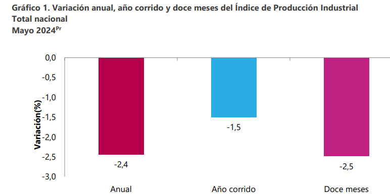 Además, la producción manufacturera en Colombia disminuyó un 3,6% interanual en mayo de 2024, retrocediendo del 4,1% del mes anterior, lo que marca la decimocuarta caída en los últimos quince meses.